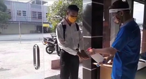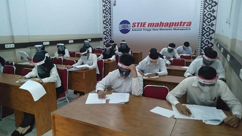 Pelaksanaan Test dilakukan dengan menerapkan Protokol Kesehatan yaitu saat Mahasiswa sampai ke Kampus diwajibkan melakukan cuci tangan dan cek suhu badan dengan Thermogun yang telah didisiapkam. Selain itu mahasiswa diwajibkan menggunakan masker dan diberikan alat pelindung wajah (faceshield) dari Kampus STIE Mahaputra Riau.