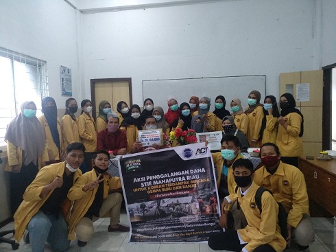Penyaluran donasi ini diberikan bersamaan dengan pendandatangan kerjasama MoU antara STIE Mahaputra Riau dan ACT (Aksi Cepat Tangggap) cabang Pekanbaru pada Sabtu, 28 Januari 2021. Agenda ini dihadiri langsung oleh ketua STIE Mahaputra Riau, Kepala Bagian Kemahasiswaan, Kepala Keuangan dan Kepegawaian, Kepala Lembaga Penjamin Mutu dan Perwakilan Mahasiswa serta beberapa orang dari pihak ACT. Penyerahan bantuan ini dilakukan oleh ketua STIE Mahaputra Riau, Bapak Masril, S.E., M.M yang diterima simbolis oleh pihak ACT untuk diserahkan kepada korban bencana alam di Kalimantan dan Sulawesi. Dari kegiatan kemanusian ini diharapkan nantinya dapat mengurangi dampak yang merugikan khususnya akibat bencana banjir di Kalimantan dan Sulawesi.